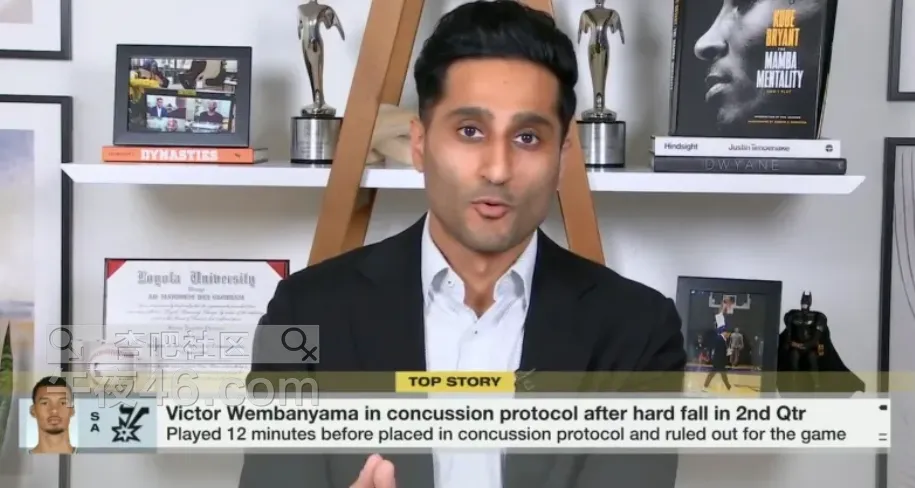 <p style="text-align: start; font-size: 16px;">04月22日讯 据名记Shams Charania报道,马刺球星维克托-文班亚马在昨晚接受评估后被正式确诊患有脑震荡,目前已进入联盟脑震荡保护协议。</p><p style="text-align: start; font-size: 16px;">Shams表示,维克托-文班亚马今天早上回到了马刺训练馆,但他能否出战第三场比赛尚不确定。</p><p style="text-align: start; font-size: 16px;">Shams指出,目前他处于脑震荡保护协议中,这意味着他在至少 48 小时内不能参加无限制的活动。也就是要到(美国时间)周四晚上。如果他的症状没有恶化,他可以从今晚开始进行一些循序渐进的轻量化训练。</p><p style="text-align: start; font-size: 16px;">Shams还提到,诊断结果出来后,他随即回家休息和恢复。马刺目前对文班亚马的情况采取每日观察。</p><p style="text-align: start; font-size: 16px;">NBA脑震荡复出协议具体如下:</p><p style="text-align: start; font-size: 16px;">“若球员被确诊患有脑震荡,则不得恢复参赛:</p><p style="text-align: start; font-size: 16px;">(a) 自受伤之时起,至少在 48 小时内;且</p><p style="text-align: start; font-size: 16px;">(b) 除非已完成规定的复出流程。”</p>